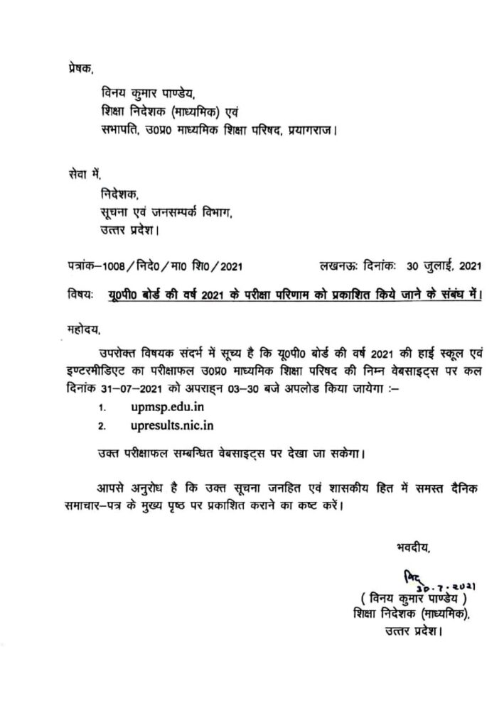 UP : यूपी बोर्ड 10वीं 12वीं रिजल्ट आज जारी होगा। उत्तर प्रदेश माध्यमिक शिक्षा परिषद ( UPMSP ) आज दोपहर 3:30 बजे हाईस्कूल (10वीं) और इंटर (12वीं) कक्षा का परिणाम ( UP Board High school Inter Result 2021 ) जारी करेगा।