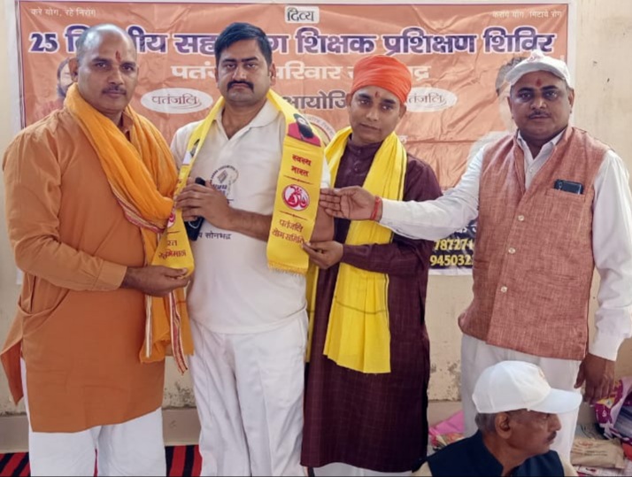 राबर्ट्सगंज नगर में परम पूज्य श्रद्धेय स्वामी महाराज द्वारा आयोजित 25 दिवसीय शिक्षक प्रशिक्षण शिविर सकुशल संपन्न होने पर, पतंजलि योग समिति उत्तर प्रदेश पूर्व के राज्य प्रभारी भ्राता संदेश योगी व भारत स्वाभिमान सह राज्य प्रभारी भ्राता दुर्गेश विंध्याचल मंडल प्रभारी भ्राता धीरज का जनपद सोनभद्र मे 25 दिवसीय सहयोग शिक्षक प्रशिक्षण के सभी योग अभ्यर्थी को मारवाड़ी धर्मशाला बैंक ऑफ बड़ौदा के पीछे रावट॔सगंज सोनभद्र प्रातः 5:00 बजे से 6:30 के बीच उपस्थित होकर पतंजलि योग समिति के राज्य प्रभारी भ्राता संदेश योगी व विंध्याचल मंडल प्रभारी भ्राता धीरज के कर कमलों से प्रमाण पत्र वितरण किया गया।