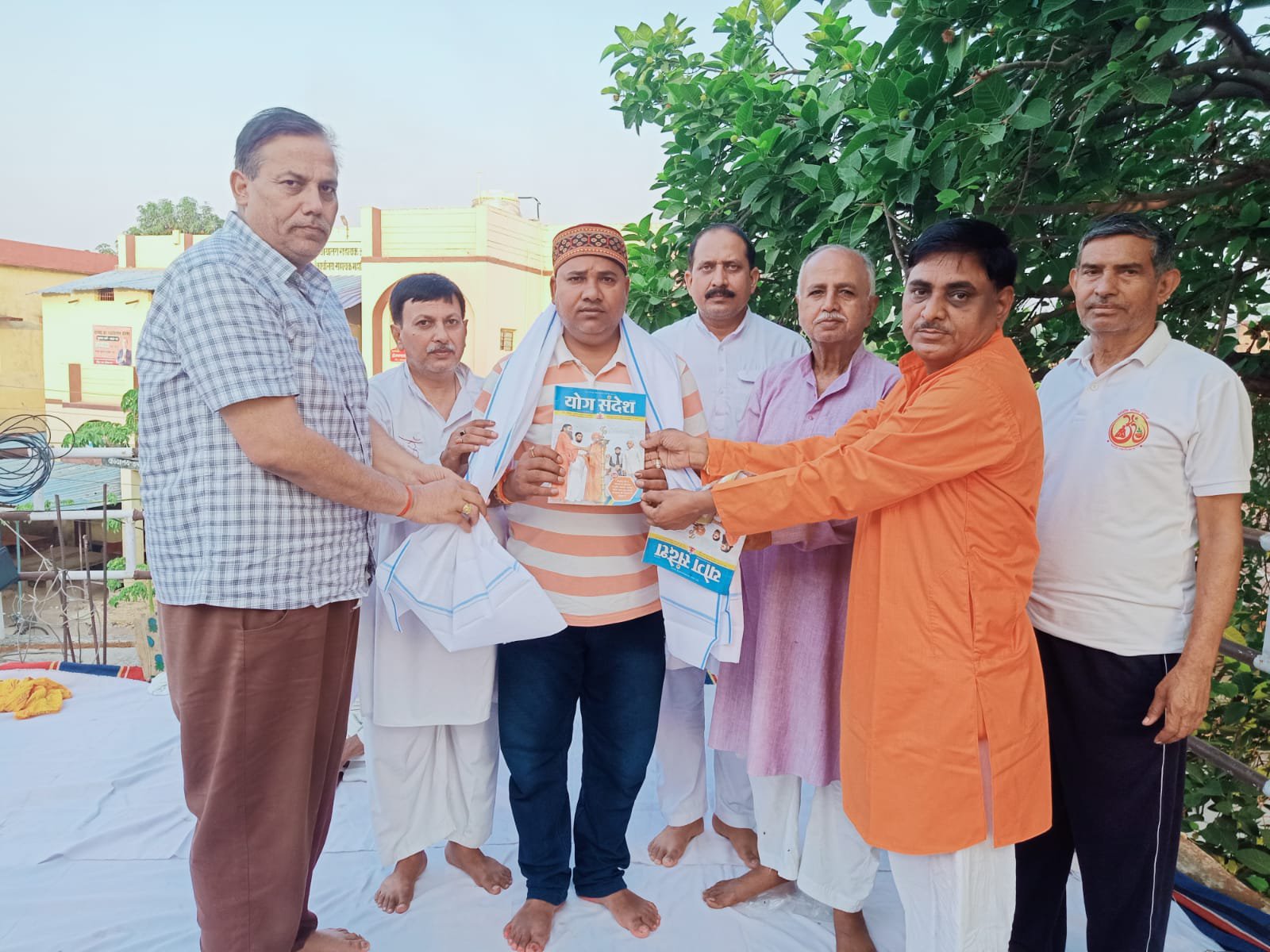 सोनभद्र। पतंजलि योग परिवार सोनभद्र द्वारा आयोजित अंतर्राष्ट्रीय योग दिवस मनाने पर भारत स्वाभिमान के जिला महामंत्री सुनील कुमार चौबे जी की अध्यक्षता में हुई चर्चा तथा सोनभद्र बार सभागार सोनभद्र में नियमित चल रहे नि:शुल्क योग कक्ष के लिए भारतीय जनता पार्टी वार्ड नंबर 24 कम्हारी रावर्टसगंज के लोकप्रिय सभासद/ पतंजलि योग समिति सोनभद्र के जिला प्रभारी रवि प्रकाश त्रिपाठी के परम मित्र आदरणीय प्रभात सिंह पटेल द्वारा योग साधकों के लिए अपने तरफ से 21 दरी व 21 जून अंतर्राष्ट्रीय योग दिवस के लिए सहयोग के रूप में 11 सौ रुपए नगद प्रदान किया गया।