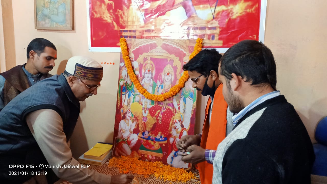 दुद्धी सोनभद्र मिनी काशी के रूप में आध्यात्मिक नगरी का स्वरूप ले चुके कस्बा दुद्धी के संकट मोचन मंदिर पर राम मंदिर निधि समर्पण कार्यालय की औपचारिक शुरुआत मर्यादा पुरुषोत्तम श्री राम माता सीता एवं हनुमान जी के चित्र पर क्षेत्र ग्राम विकास प्रमुख ,( पूर्वी उत्तर प्रदेश क्षेत्र) श्री चंद्र मोहन जी द्वारा निधि समर्पण कार्यालय की शुरुआत की गई।
