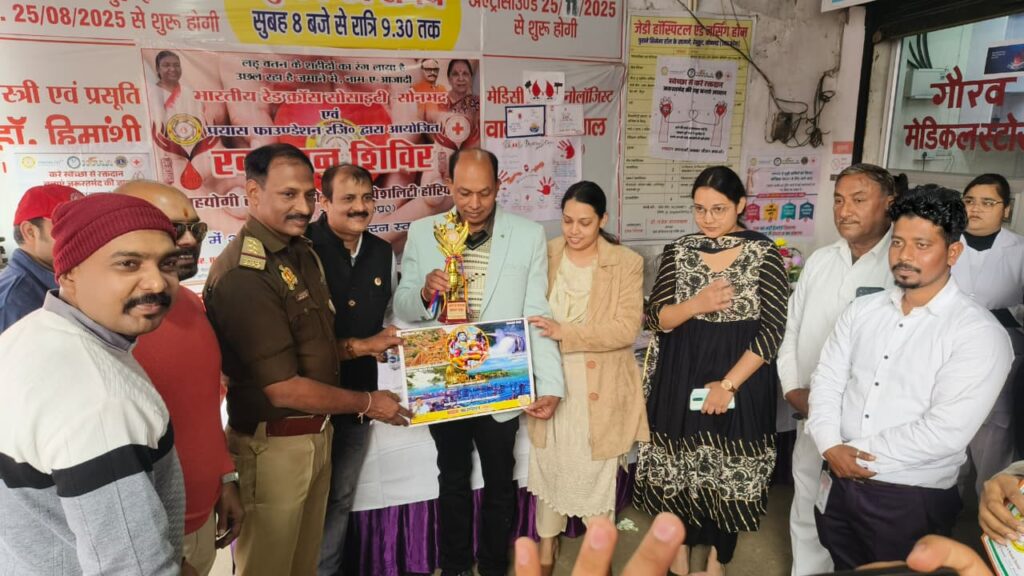 नगर के शिवापार्क स्थित जे.डी.मल्टी स्पेशलिटी हॉस्पिटल परिसर में रविवार को एक स्वैच्छिक रक्तदान शिविर का आयोजन किया गया। इस शिविर में कुल 45 लोगो ने रजिस्ट्रेशन कराया व जांच के उपरांत 35 लोगों ने स्वैच्छिक रक्तदान कर मानवता की सेवा में अपना योगदान दिया। इस रक्तदान शिविर का आयोजन इंडियन रेड क्रॉस सोसाइटी,रक्तदाता समूह प्रयास फाउंडेशन एवं जे.डी.मल्टी स्पेशलिटी हॉस्पिटल के संयुक्त सहयोग से किया गया।