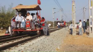 रेलवे ट्रैक पुलिया का निरीक्षण कर विंढमगंज (उ0प्र0) नगर उंटारी (झारखंड) रेल लाईन दोहरीकरण और विंढमगंज रेलवे स्टेशन की नई बिल्डिंग का शुभारंभ किया।