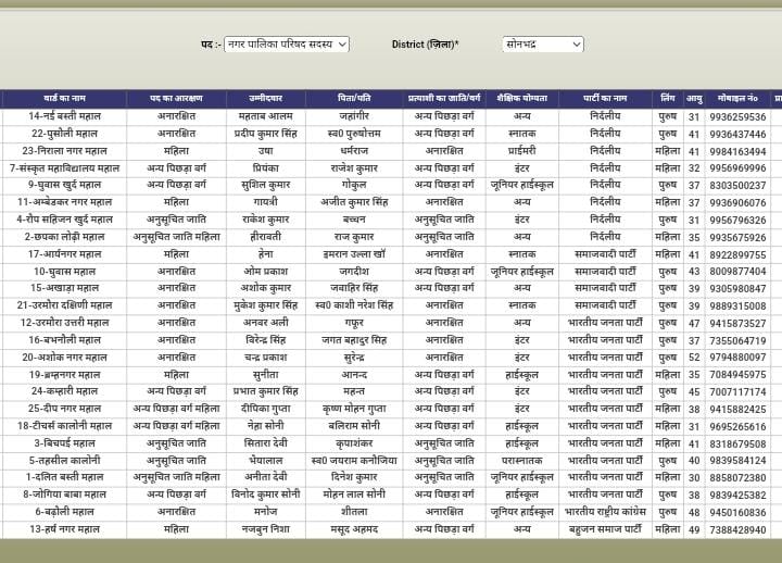 रॉबर्ट्सगंज नगर पालिका के वार्ड 1 से 25 तक के विजयी प्रत्यासी