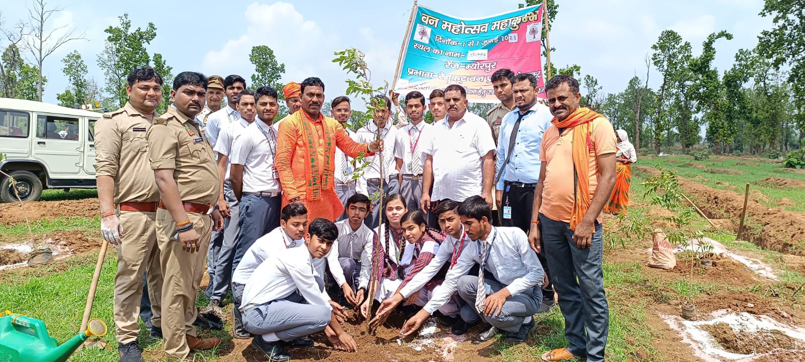 म्योरपुर रेंज क्षेत्र के परनी वनभूमि पर मून स्टार इंग्लिश स्कूल में अध्यन कर रहे छात्र छात्राओं के साथ गुरुवार को वनमहोत्सव महा कुम्भ कार्यक्रम के तहत दुद्धी विधायक रामदुलार सिंह गोड़ ने स्कूल के बच्चो के साथ रैली निकाल बृक्षारोपण कर पर्यावरण का संदेश दिया। इस दौरान नंगी धरती करे पुकार बृक्ष लगा करो सृंगार नारो के साथ पूरा प्लांटेशन गूँजमानमय हुआ। अपने सम्बोधन में श्री गोड़ ने कहा एक बृक्ष सौ पुत्र के समान होता है जैसे हम अपने बच्चो का देखभाल करते है ठीक उसी प्रकार हमे बृक्षों का भी देख भाल करने की जरूरत है उन्होंने कहा अभी 2 वर्ष पूर्व करुणा काले यह बता दिया कि मनुष्य को जीवन जीने के लिए ऑक्सीजन की कितनी आवश्यकता है कहा कि यही पौधे आगे चलकर वृक्ष होंगे जो हमें जीवन जीने के लिए शुद्ध ऑक्सीजन देंगे वह पर्यावरण को सुरक्षित रखेंगे कहां इस बढ़ते प्रदूषण के दौर में एक व्यक्ति को कम से कम 5 फलदार इमारती वृक्ष लगाना चाहिए व उसका देखभाल की जिम्मेदारी स्वयं उठाने चाहिए।