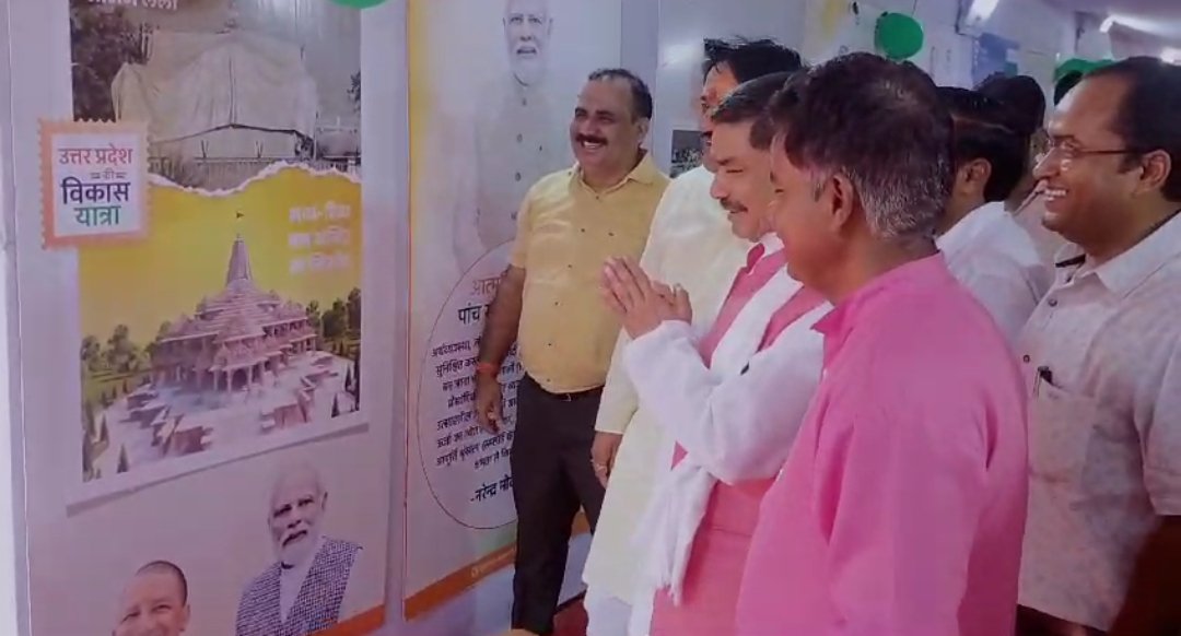 सोनभद्र के राबर्ट्सगंज के आर0टी0एस0 क्लब में आयोजित ’विकास प्रदर्शनी‘ का मा0 सांसद श्री पकौड़ी लाल कोल ने फीता काटकर शुभारम्भ किया, इस अवसर पर ब्लाक प्रमुख राबर्ट्सगंज श्री अजीत रावत,जिला प्रोबेशन अधिकारी श्री सुधांशु शेखर शर्मा, मा0 जिला पंचायत अध्यक्ष के प्रतिनिधि श्री अरूण पटेल, अपर जिला सूचना अधिकारी श्री विनय कुमार सिंह ने सभी अतिथियों व पत्रकारों को विकास प्रदर्शनी में लगे सभी योजनाओं के बारे में जानकारी दी। शुभारंभ करते हुए सांसद पकौड़ी लाल कोल ने बताया कि प्रधानमंत्री व मुख्यमंत्री के कुशल नेतृत्व में अन्त्योदय को भी विभिन्न जनकल्याणकारी योजनाओं से रूबरू व परिचित कराने के लिए इस विकास प्रदर्शनी का आयोजन किया गया है।