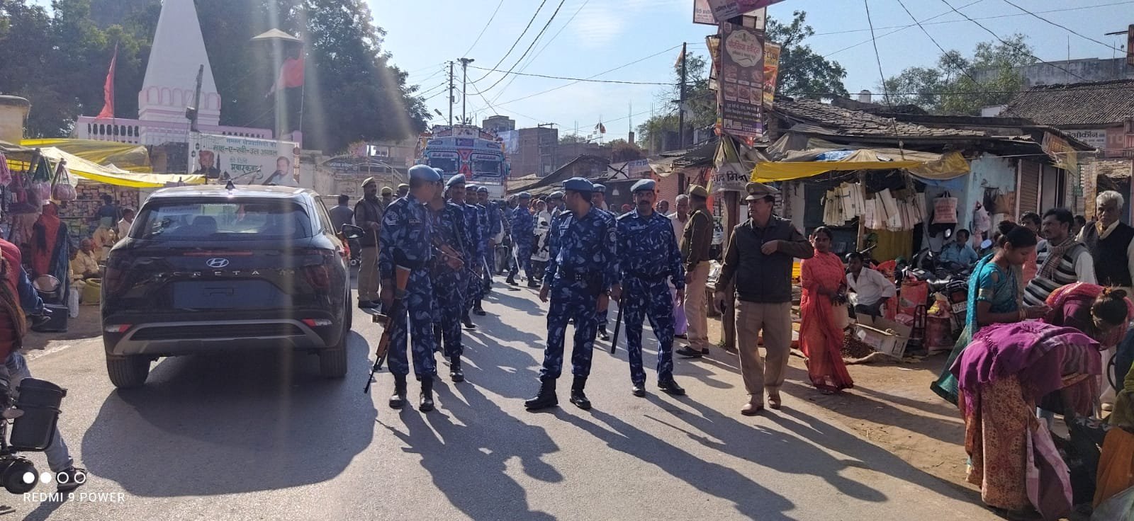 दुद्धी सोनभद्र कोतवाली अंतर्गत शासन के निर्देश पर प्रभारी निरीक्षक श्रीकांत राय व कस्बा चौकी प्रभारी संजय सिंह के नेतृत्व में आर ए एफ फोर्स के साथ कस्बा दुद्धी में रूट मार्च कोतवाली दुद्धी पुलिस संग शांति सुरक्षा व्यवस्था के मद्देनजर शासन के निर्देश पर किया गया।