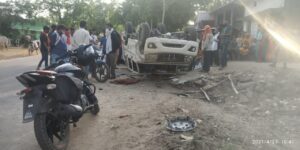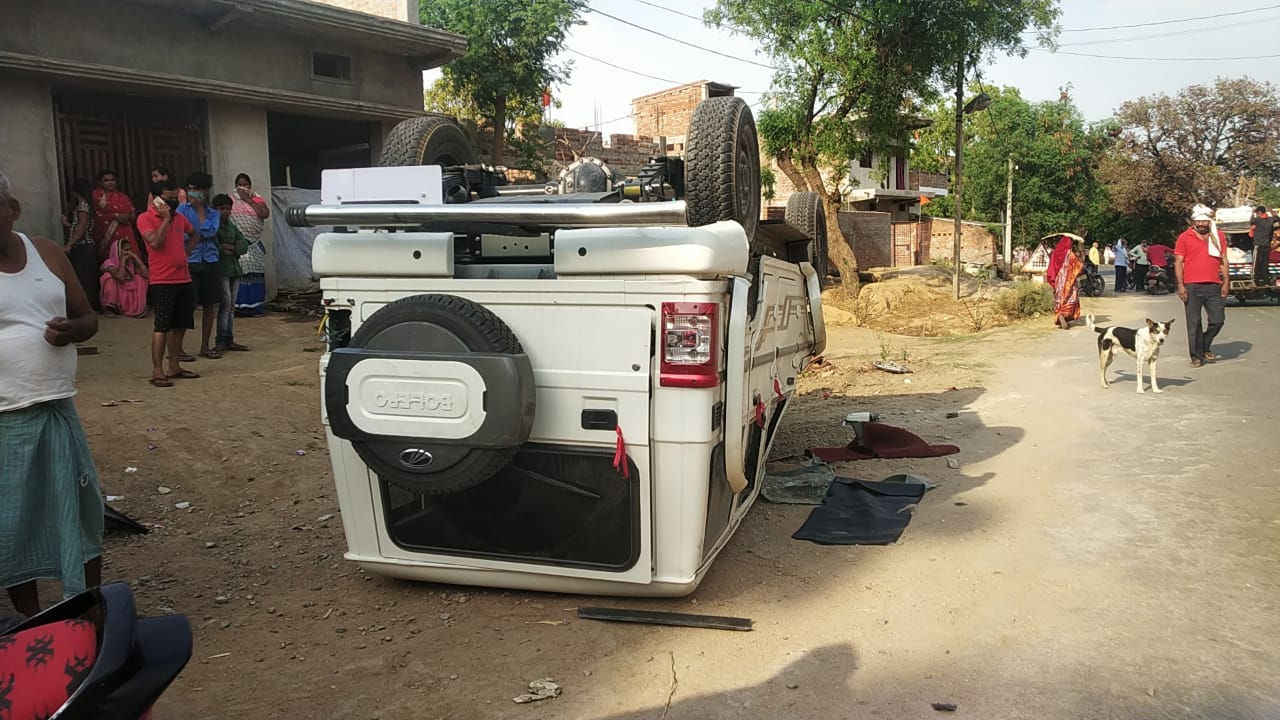 शादी समारोह में जा रही बोलेरो अनियंत्रित होकर पलटी।