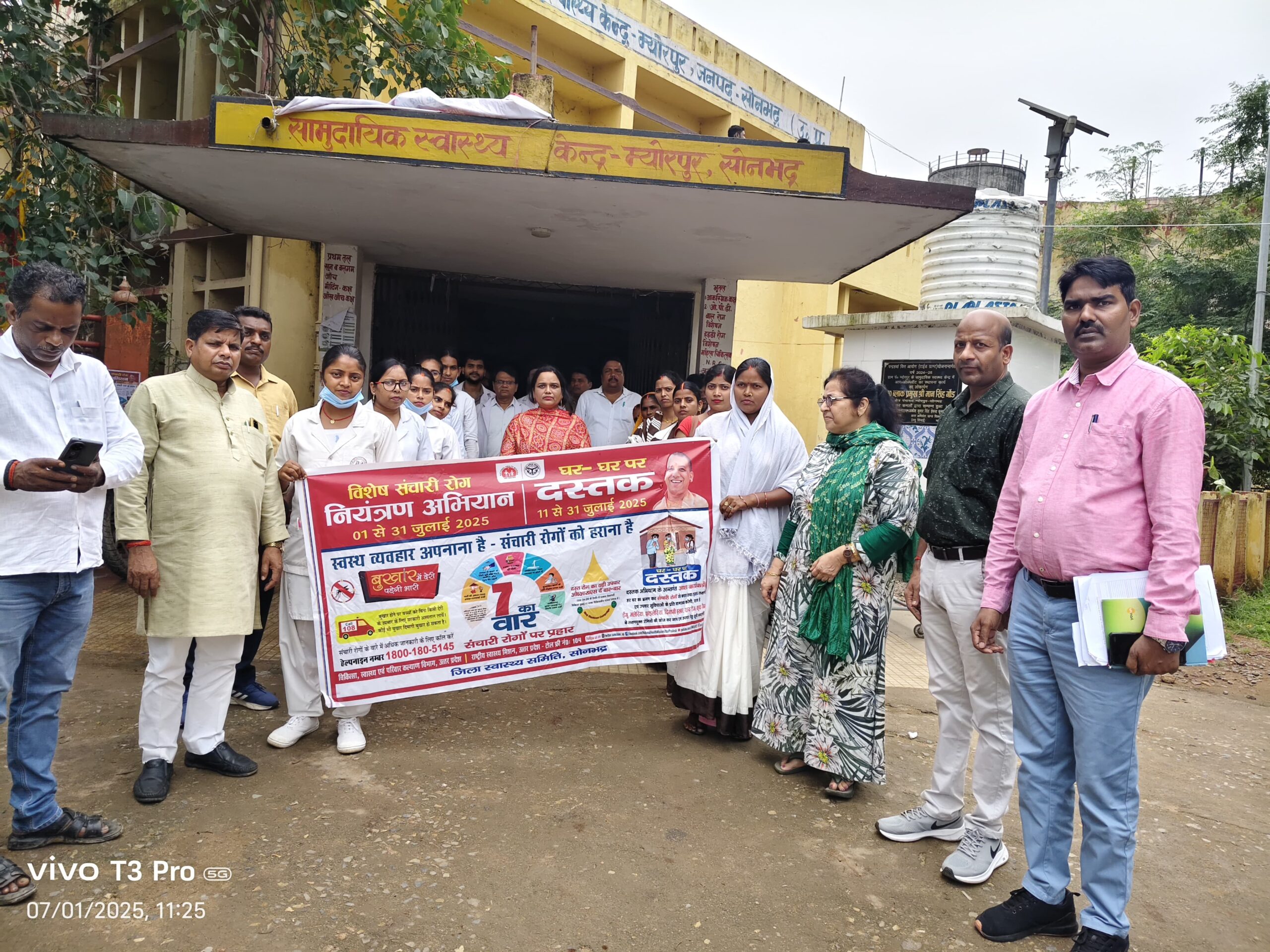 म्योरपुर विकासखंड अंतर्गत स्थित सामुदायिक स्वास्थ्य केंद्र (सीएचसी) म्योरपुर में मंगलवार को संचारी रोग नियंत्रण अभियान का शुभारंभ किया गया। कार्यक्रम का उद्घाटन विंध्याचल मंडल अपर निदेशक मेघना दुबे और म्योरपुर के ब्लॉक प्रमुख मानसिंह गोंड ने संयुक्त रूप से किया।उद्घाटन के पश्चात स्वास्थ्य विभाग की टीम द्वारा संचारी रोगों के प्रति जागरूकता रैली निकाली गई, जिसमें ग्रामीणों को इन रोगों से बचाव के उपायों की जानकारी दी गई।