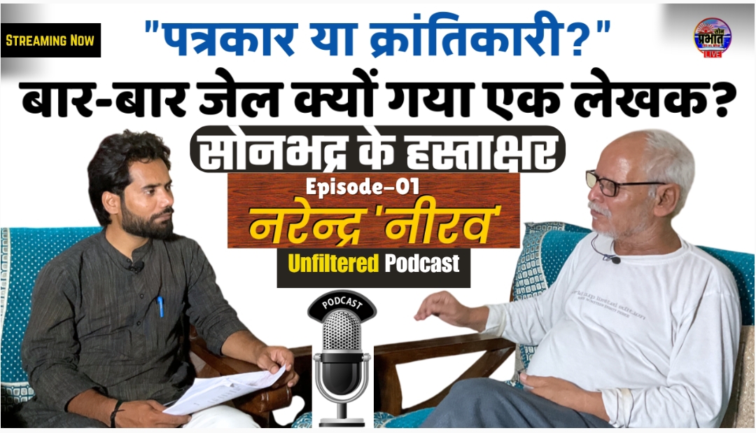 दिनांक 15 जून को एक ऐतिहासिक साहित्यिक पहल के रूप में, सोनप्रभात न्यूज के संपादक आशीष कुमार गुप्ता एवं उनके टीम द्वारा (सहयोगी आशीष यादव) एक विशेष पॉडकास्ट साक्षात्कार सोन प्रभात न्यूज के यूट्यूब चैनल पर प्रकाशित किया गया। यह साक्षात्कार, सोनभद्र के वरिष्ठ पत्रकार, सुप्रसिद्ध कवि, विचारक, लेखक और वनवासी-आदिवासी संस्कृति के सजग प्रहरी आदरणीय नरेंद्र नीरव जी के साथ था।