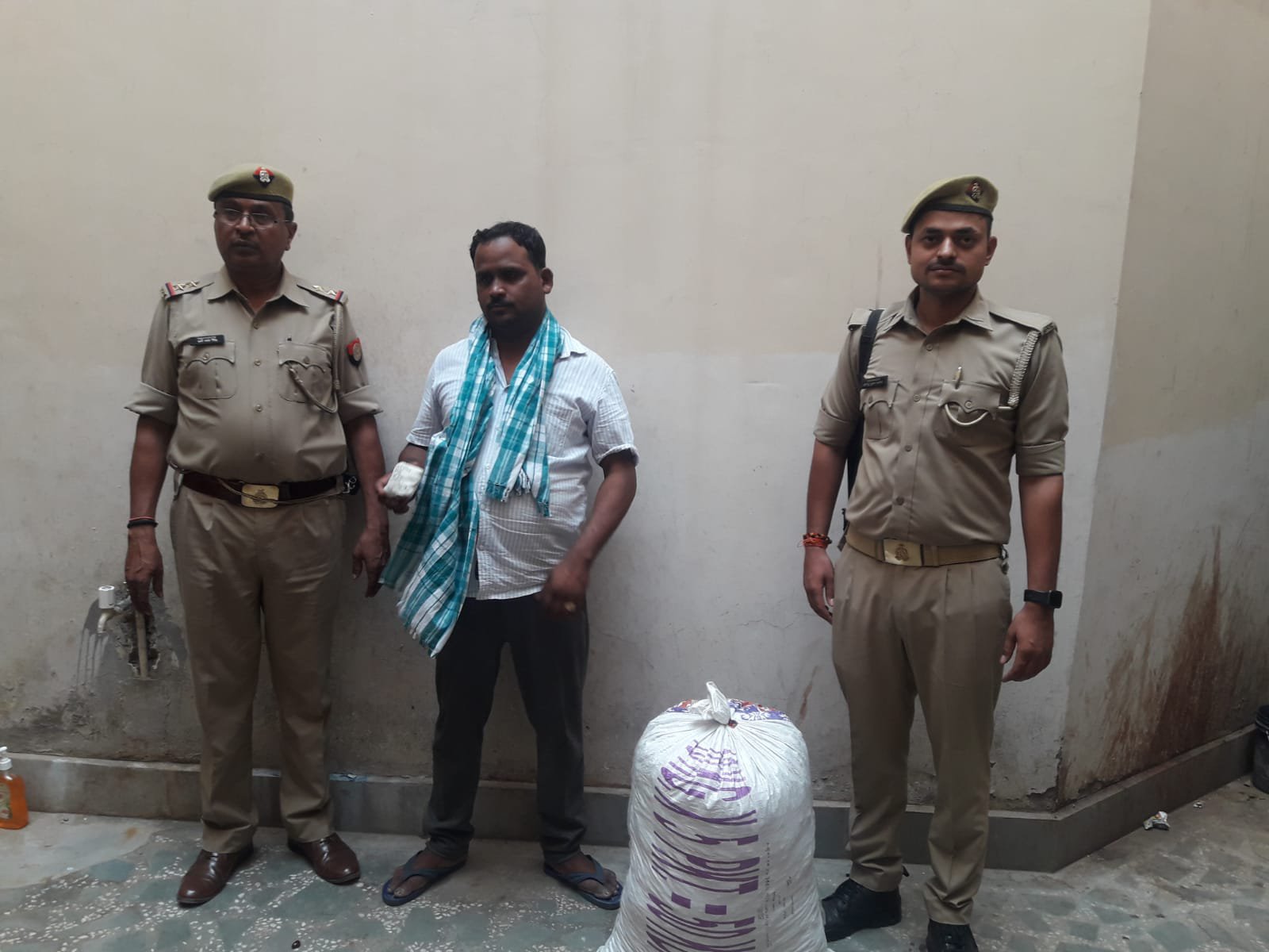 जनपद सोनभद्र में पुलिस उप महानिरीक्षक/पुलिस अधीक्षक सोनभद्र श्री अमरेन्द्र प्रसाद सिंह के निर्देशानुसार मादक पदार्थो के व्यापार में संलिप्त अपराधियों के विरूद्ध प्रभावी कार्रवाई के निर्देश दिये गये हैं । इस आदेश के क्रम में अपर पुलिस अधीक्षक मुख्यालय के निर्देशन में स्वाट/एसओजी/सर्विलांस टीम तथा थाना रॉबर्ट्सगंज पुलिस की संयुक्त कार्रवाई में दिनांक 22.05.2022 को उपरोक्त टीम द्वारा मुखबिर की सूचना पर बैजू बाबा मन्दिर के पास से एक इटियास कार UP 32 EL 2728 में बैठे 01 नफर अभियुक्त महेश सोनकर पुत्र शिवमूरत सोनकर निवासी गुलामी का पुरा, थाना सिधारी, जनपद आजमगढ़ को गिरफ्तार कर उसकी निशानदेही पर कार की डिग्गी में रखे बोरे से 20 किग्रा गांजा बरामद किया गया ।