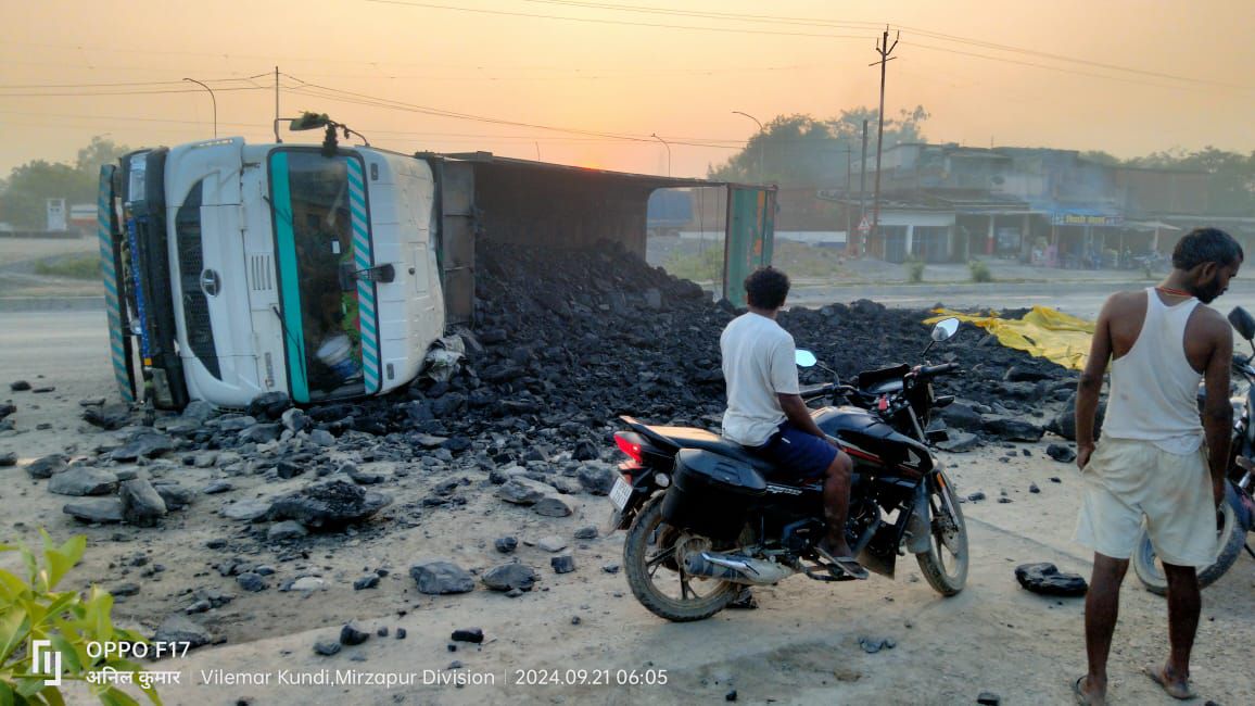 डाला सोनभर । कोयल लदी ट्रेलर अनियंत्रित होकर हुई दुर्घटना का शिकार।