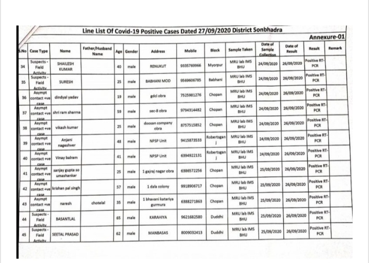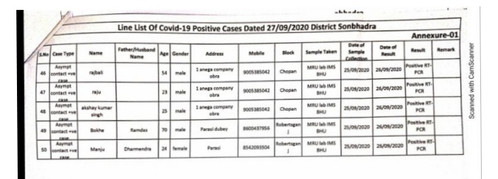 सोनभद्र जिले में कोरोना संक्रमण लगातार बढ़ता जा रहा है, पिछले 24 घण्टे के भीतर 50 नए कोरोना पॉजिटिव मरीज की पुष्टि सीएमओ डॉ एस0के0उपाध्याय ने की।