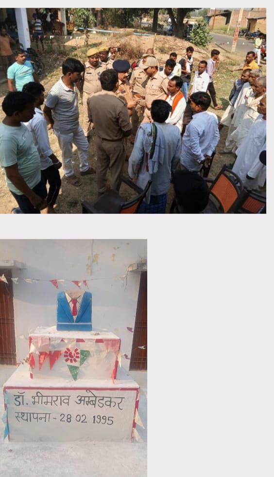 सोनभद्र में तीसरी बार डॉ. भीमराव अंबेडकर की प्रतिमा तोड़े जाने से तनाव, पुलिस बल तैनात।