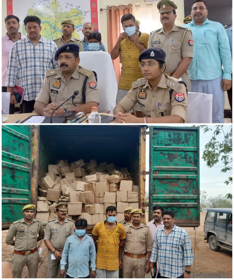 पुलिस अधीक्षक सोनभद्र, डॉ0 यशवीर सिंह द्वारा अवैध मादक पदार्थ/शराब तस्करी करने वाले तस्करों के विरुद्ध चलाये गये अभियान के क्रम में अपर पुलिस अधीक्षक (मुख्यालय) श्री कालू सिंह व क्षेत्राधिकारी ओबरा डॉ0 चारु द्विवेदी के निर्देशन में एसओजी/सर्विलांस व थाना ओबरा पुलिस की सयुंक्त टीम द्वारा अथक परिश्रम व पूर्ण मनोयोग से आसूचना संजाल तैयार किया गया, दिनांक 28.06.2023 को जरिये मुखबीर सूचना मिली कि शराब तस्कर एक ट्रक कंटेनर से भारी मात्रा में अवैध शराब की एक बड़ी खेप लेकर झारखण्ड के रास्ते कोलकत्ता जा रहे हैं । इस सूचना पर त्वरित कार्यवाही करते हुए गठित टीम द्वारा रेलवे क्रासिंग ओबरा के पास से 01 अदद कंटेनर ट्रक संख्या HR-47-B-4127 में लोड 1550 पेटी अवैध अंग्रेजी शराब “333 GOLD PURE GRAIN WHISKY” की बरामदगी मय फर्जी दस्तावेज के 02 अन्तर्राज्यीय शराब तस्कर को गिरफ्तार कर लिया गया । इस गिरफ्तारी व बरामदगी के सम्बन्ध में थाना ओबरा पर मु0अ0सं0-143/2023 धारा 60/63 आबकारी अधिनियम व धारा 419, 420, 467, 468, 471 भादवि का अभियोग पंजीकृत कर विधिक कार्यवाही की जा रही है।