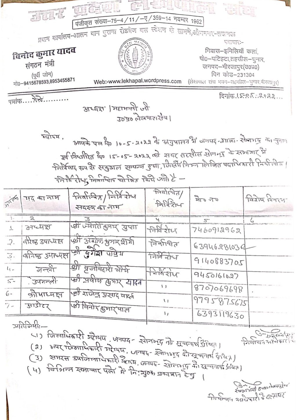 - ज्योति कुमार गुप्ता जिलाध्यक्ष और बृज बिहारी मौर्य मंत्री बनाए गए।