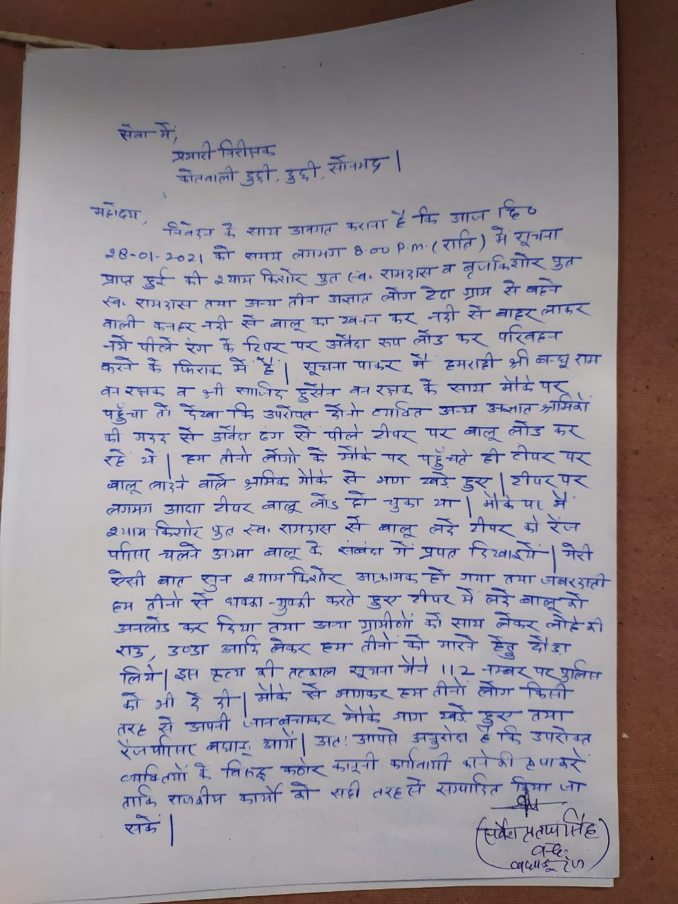 • 👉सर्वेश प्रताप सिंह वन दरोगा बघाडू रेंज ने थाना कोतवाली दुद्धी में दी तहरीर ।