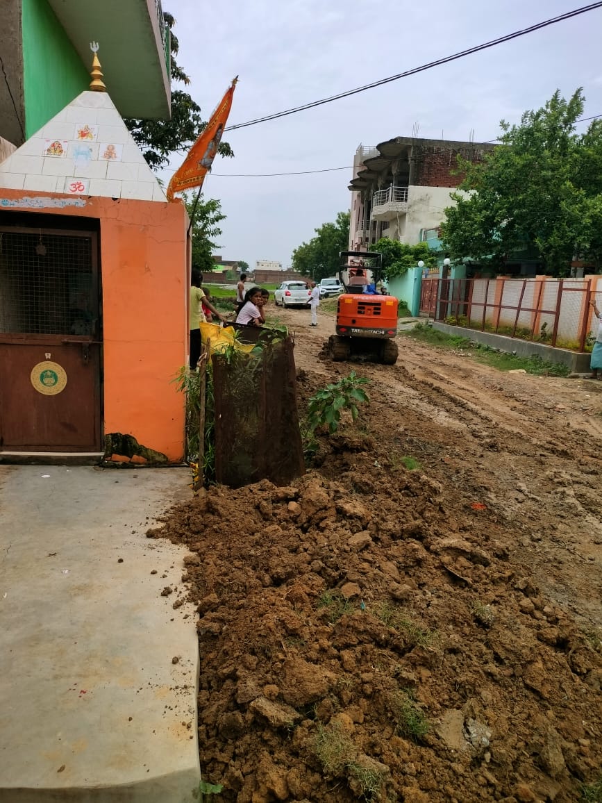 लगातार बारिश से, नाली से निकली मिट्टी कीचड़ में तब्दील हो गई. लगातार प्रयास के बाद नगरपालिका प्रशासन द्वारा बुलडोजर से कीचड़ और मिट्टी तो हटा दिया गया किंतु इससे बने गढ्ढे भारी बारिश में जलजमाव की वजह बन जायेंगे.