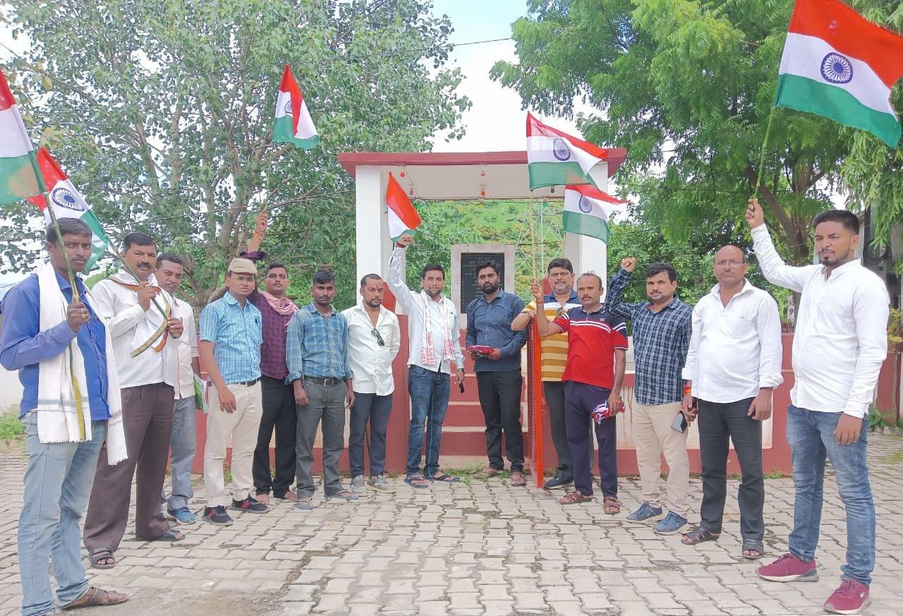 डाला सोनभद्र- देश के 75वें आजादी को अमृत महोत्सव के रूप में मनाने के लिए देश के मां. प्रधानमंत्री नरेंद्र मोदी द्वारा हर घर तिरंगा अभियान चलाया गया है जिस के क्रम में आज डाला नगर पंचायत द्वारा जिला उपाध्यक्ष भारतीय जनता युवा मोर्चा धीरेंद्र प्रताप सिंह सोनू के नेतृत्व में सभी घरों तक तिरंगा पहुंचाने का अभियान चलाया गया।