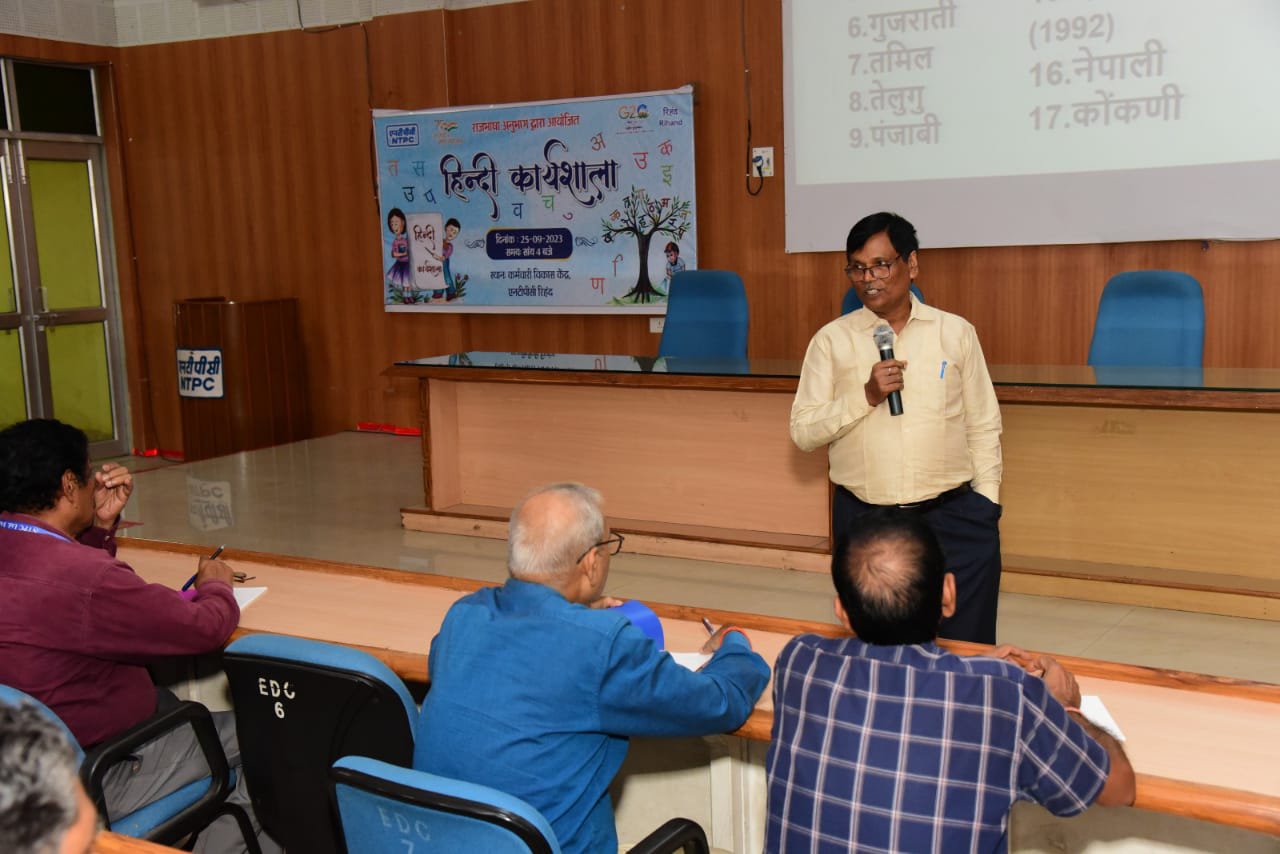 कार्यक्रम में वक्ता के रूप में डॉ मिथिलेश कुमार श्रीवास्तव नें हिंदी के महत्व को बढ़ावा देने और एनटीपीसी रिहंद के कर्मचारियों को राजभाषा के प्रति जागरूक करने के उद्देश्य से प्रशिक्षित किया।’हिंदी पखवाड़ा’ के अंतर्गत कार्यशाला में वक्ता द्वारा संघ कि राजभाषा नीति, राजभाषा प्रावधान, अष्टम सूची, राजभाषा अधिनियम 1963, राजभाषा नियम 1976, हिन्दी वर्तनी का मानकीकरण, जांच बिन्दुओं का अनुपालन, नोटिंग ड्राफ्टिंग आदि से संबन्धित, प्रशिक्षण दिया। कार्यशाला द्वारा कर्मचारियों को हिंदी में अधिक निपुण बनाने का प्रयास किया गया।
