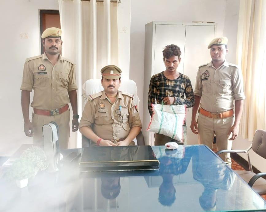 डाला सोनभद्र- पुलिस अधीक्षक के निर्देशन पर आज सोमवार को लगभग 12: 40 बजे डाला पुलिस चौकी क्षेत्र के बाडी सेवा सदन मोड़ के पास से अभियुक्त मुकेश कुमार विश्वकर्मा उम्र लगभग 20 वर्ष पुत्र नरेश कुमार विश्वकर्मा निवासी दाढी होटल के पीछे को 01 किलो 260 ग्राम नाजायज गांजा के साथ गिरफ्तार करते हुए धारा मु0अ0सं0 158/2023 धारा 8/20 एनडीपीएस एक्ट के तहत माननीय न्यायालय भेजा जा रहा है।