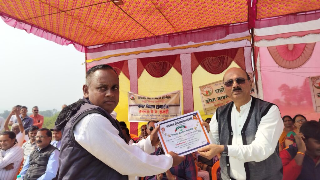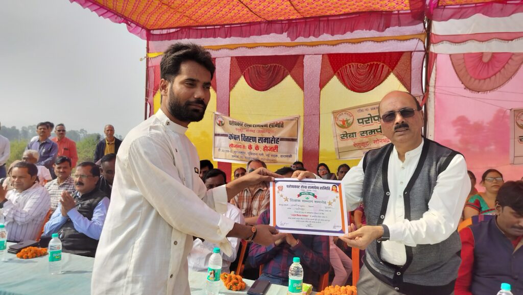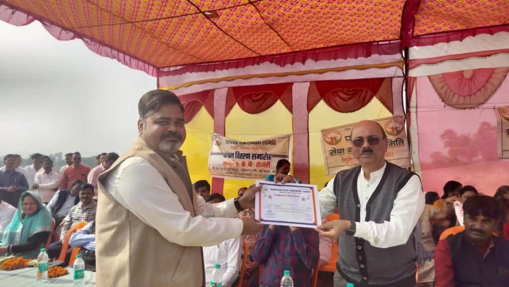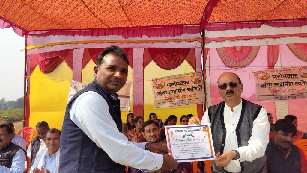 परोपकार सेवा समर्पण समिति रेणुकूट की पहल पर धनखोर गांव में 100 गरीब, असहायों में कम्बल वितरण हुआ। शिक्षकों को प्रशस्ति पत्र और अंगवस्त्रम देकर किया गया सम्मानित। 200 बच्चों को मिले कॉपी कलम।