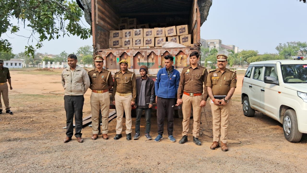 पुलिस अधीक्षक सोनभद्र डॉ0 यशवीर सिंह के निर्देशन एवं अपर पुलिस अधीक्षक मुख्यालय व क्षेत्राधिकारी नगर के पर्यवेक्षण तथा कुशल नेतृत्व में अपराध एवं अपराधियों व मादक पदार्थों पर प्रभावी अंकुश लगाये जाने हेतु चलाये जा रहे अभियान के अन्तर्गत थाना चोपन पुलिस व आबकारी की संयुक्त टीम द्वारा आज मंगलवार को समय प्रातः 05.35 बजे धरातलीय अभिसूचना पर वाराणसी शक्तिनगर राज्य मार्ग पर चेकिंग के दौरान बग्घानाला के पास एक ट्रक वाहन संख्या- RJ14CC3975 से McDowells No1 व Officers Choice BLUE कम्पनी की कुल 690 पेटी मे कुल 6120 लीटर अवैध अंग्रेजी शराब( अनुमानित कीमत 80 लाख रुपये) के साथ 02 नफर अभियुक्त क्रमशः 1. बलविन्दर कुमार पुत्र किशोर कुमार निवासी छोटा अराई थाना सदर किला चौक जिला पटियाला (पंजाब) उम्र लगभग 24 वर्ष 2. सूरज कुमार पुत्र मुन्ना लाल निवासी छोटा अराई, देवीगढ़ रोड़ थाना सदर किला चौक जिला पटियाला (पंजाब) उम्र लगभग- 24 वर्ष को गिरफ्तार किया गया । उक्त बरामदगी एवं गिरफ्तारी के सम्बन्ध में थाना चोपन पर मु0अ0सं0- 03/2023 धारा- 60/63 आबकारी अधिनियम व 419, 420, 467, 468, 471, 120बी भादवि का अभियोग पंजीकृत कर विधिक कार्यवाही की जा रही है।