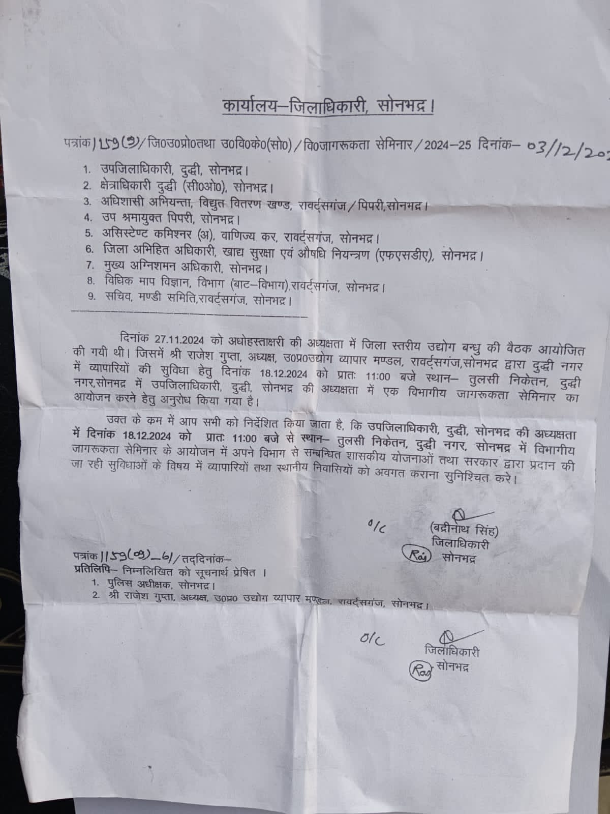 Sonbhadra News: दुद्धी व्यापारी जागरूकता कार्यक्रम में एस डी एम दुद्धी सहित उपस्थित होंगे सोनभद्र के उच्च अधिकारीगण, December 17, 2024 8:03 PM