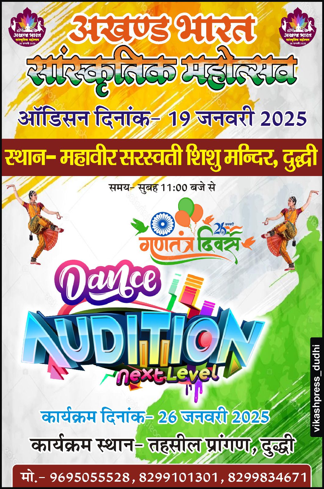 गणतंत्र दिवस पर दुद्धी तहसील प्रांगण में होगी डांस प्रतियोगिता, 19 जनवरी को होगा ऑडिशन January 19, 2025 7:42 AM
