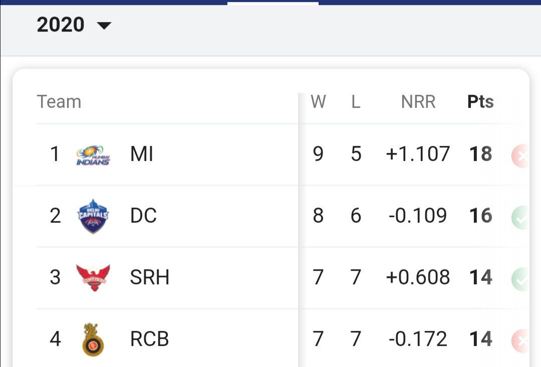 आईपीएल 2020 का टाइटल अपने नाम करने हेतु ये चार टीम पहुँची प्लेऑफ तक।