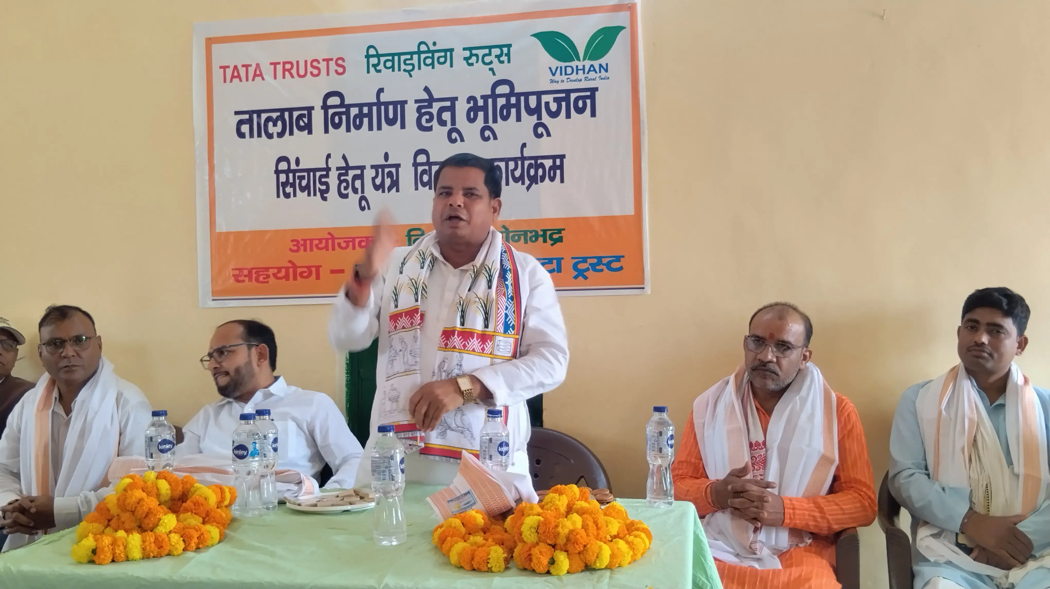सोनभद्र जनपद के म्योरपुर विकासखंड अंतर्गत ग्राम पंचायत लीलादेवा में आज विकास और नवाचार की एक प्रेरणादायक पहल देखने को मिली। विधान संस्थान द्वारा संचालित परियोजना के तहत तालाब निर्माण के लिए भूमिपूजन किया गया। इसी अवसर पर 20 चयनित प्रगतिशील किसानों को पोर्टेबल स्प्रिंकलर सेट वितरित किए गए, जिससे क्षेत्र में आधुनिक खेती को नई दिशा मिलने की उम्मीद है।