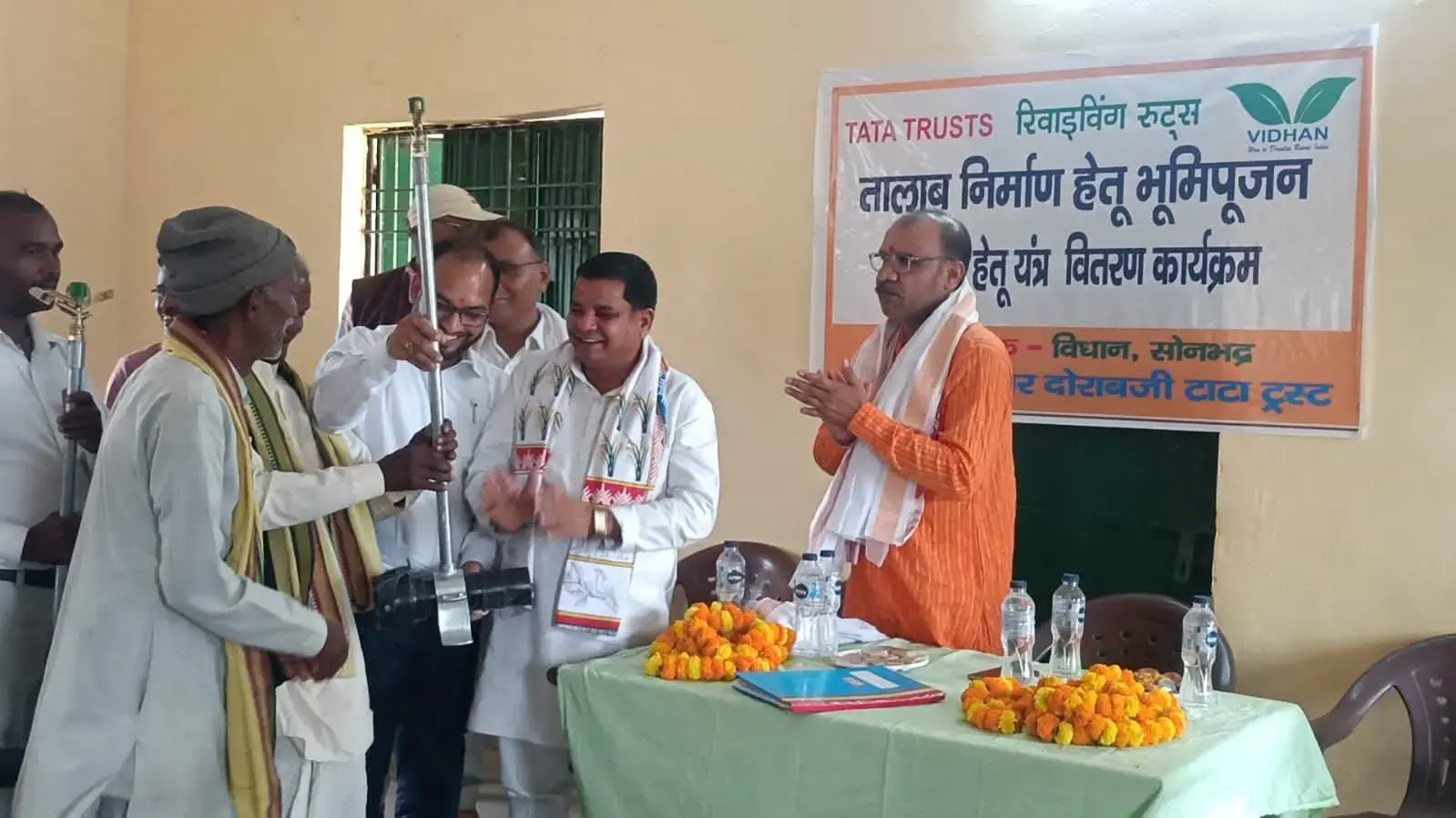 ब्लॉक प्रमुख म्योरपुर मान सिंह ने किया तालाब निर्माण हेतु भूमिपूजन, किसानों को मिले स्प्रिंकलर सेट : विधान संस्था की विशेष पहल।