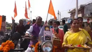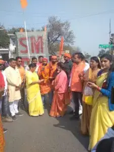 जिसका स्वागत अनेक भाजपा जनो एवं महिला एवं युवा मोर्चा कार्य कर्ताओ तथा राम भक्तो ने किया , पूरा वातावरण राम मय होकर जय श्री राम के नारोंसे गुंजित हो गया।