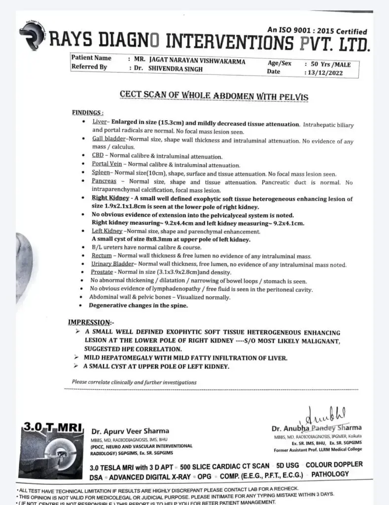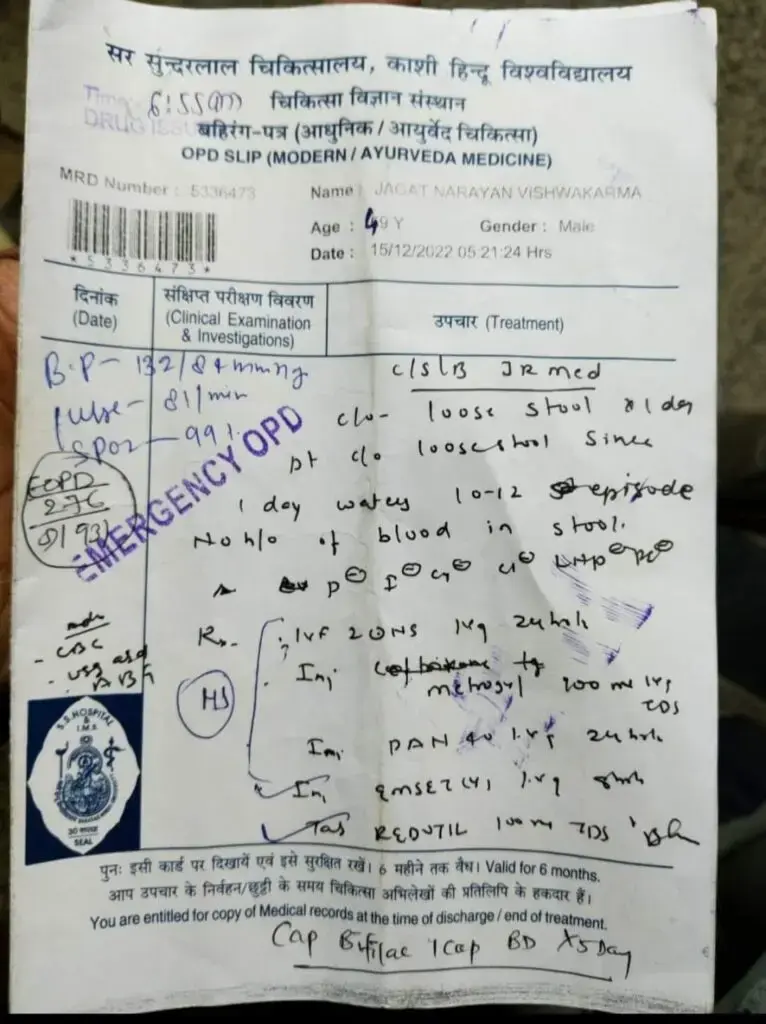 रोगी का नाम - जगत नारायण विश्वकर्मा