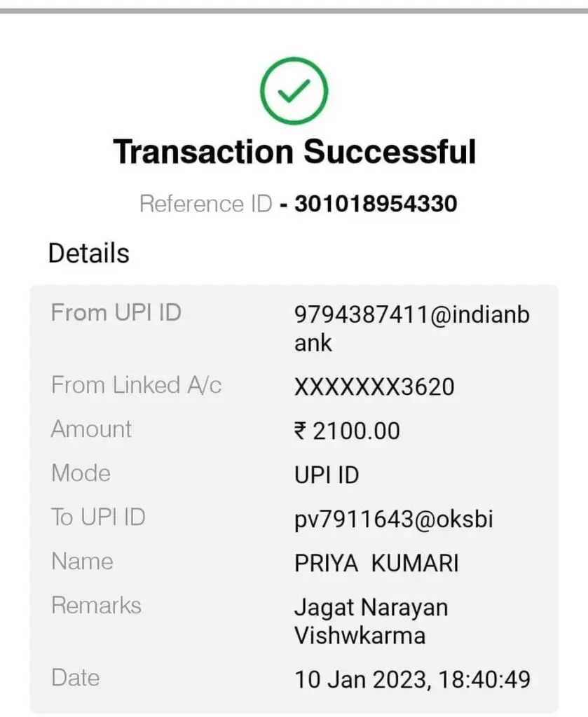 पुत्री का नाम - प्रिया विश्वकर्मा