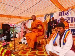 भगवान बुद्ध का विचार भारत को विश्व गुरू बनाया: बबलू बिंद - सम्राट अशोक व बाबा साहब अंबेडकर ने की थी भारत वर्ष की परिकल्पना: अविनाश कुशवाहा - ऐतिहासिक विरासत मऊ कला में बौद्ध महोत्सव का हुआ आयोजन सोनभद्र। प्रत्येक वर्ष की भांति इस वर्ष भी बौद्ध विरासत की ऐतिहासिक धरती मऊ कला सोनभद्र में वृहस्पतिवार को बौद्ध महोत्सव कार्यक्रम का आयोजन किया गया। इस आयोजन की शुरूआत अतिथियों द्वारा ध्वजारोहण व राष्ट्रगान के साथ किया गया। महोत्सव में मुख्य अतिथि परम पूज्य भंते बुद्ध ज्योति जी ने कहा कि भगवान बुद्ध एवं सम्राट अशोक के महान आदर्श पर स्थापित गौरवशाली समृद्धि साली, शक्तिशाली, वैभवशाली भारत जिसमें ना कोई शोषक था ना कोई शोषित सभी मनुष्य थे। जिनमें मानवीय हृदय और मानवी संवेदना शीलता थी। समता, स्वतंत्रता, न्याय बंधुत्व का बोलबाला था ना कोई अमीर था ना कोई गरीब सबकी नजर में भारतवर्ष एक परिवार एवं देशवासी उसके सदस्य थे।