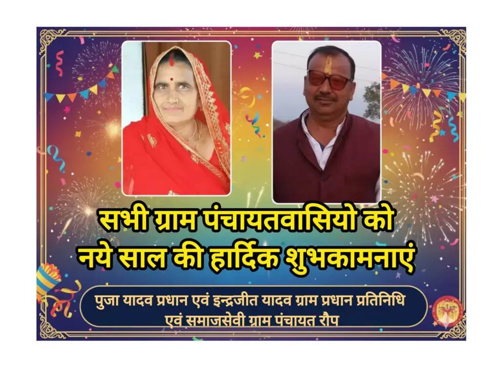 नववर्ष 2026 के अवसर पर ग्राम पंचायत रौप की ग्राम प्रधान पूजा यादव एवं ग्राम प्रधान प्रतिनिधि व समाजसेवी इन्द्रजीत यादव ने ग्राम पंचायत के समस्त नागरिकों को नववर्ष की हार्दिक शुभकामनाएं दीं।