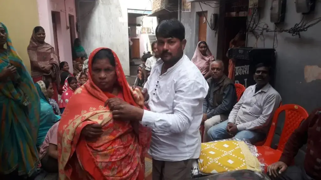 रेनुकूट में नव वर्ष पर गरीबों को मिले शाल, सोनू शाह सभासद ने असहाय परिवारों में बांटे, चेहरे पर आई खुशी।