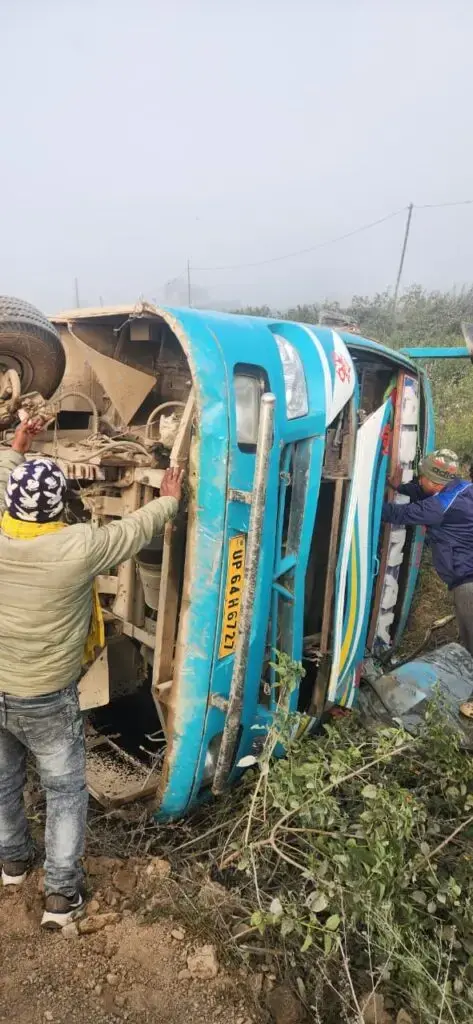 सोनभद्र में बड़ा सड़क हादसा: सवारी से भरी प्राइवेट बस अनियंत्रित होकर पलटी, पांच घायल