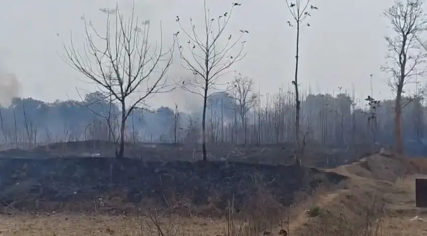 दुद्धी ब्लॉक के मूर्ता गांव में भीषण आग, सैकड़ों सागौन के पेड़ जलकर राख — लाखों का नुकसान