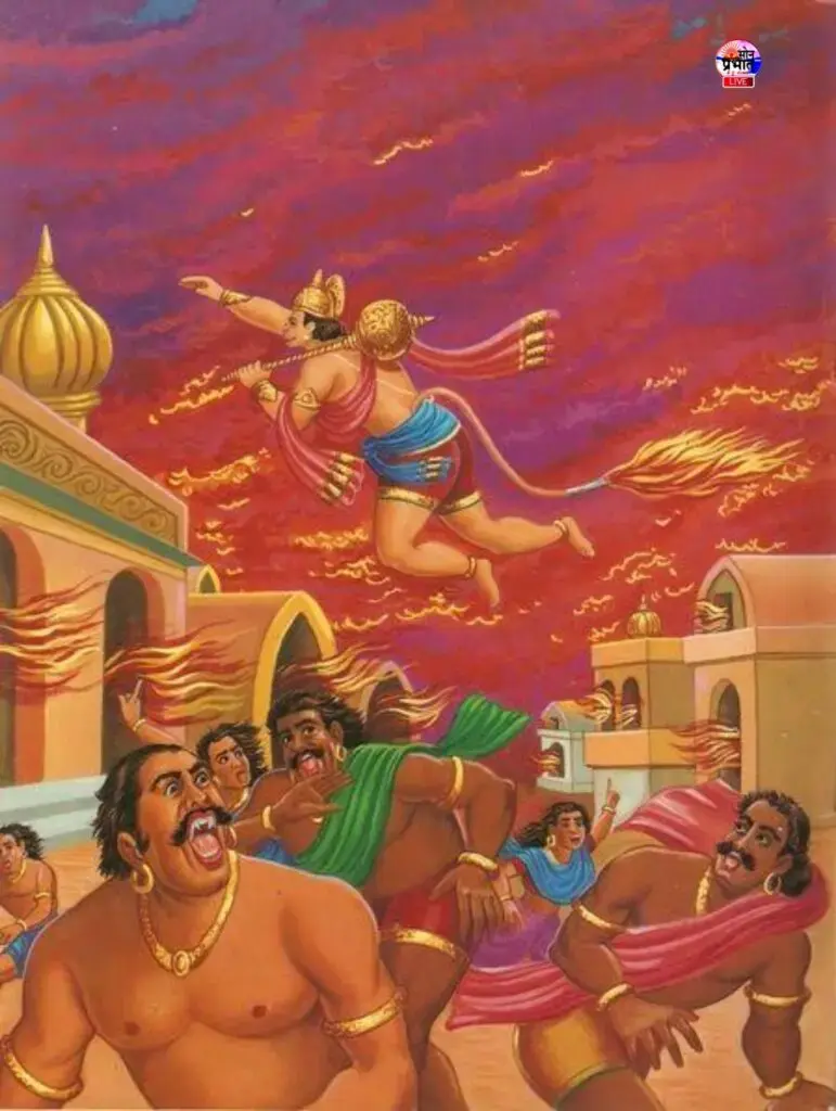 यह सब कैसे हुआ? आइए इसी पर विचार करते हैं। जब हनुमान जी ने अशोक वाटिका का फल खाया और पेड़ों को उखाड़ कर वाटिका उजाड़ने लगे तो रखवालो ने उन्हें मना की। हनुमान जी ने रखवालों को मारा, वे जाकर रावण को सूचना दिए, रावण ने विशाल राक्षसी सेना भेंजी पर उनका भी संहार हुआ फिर रावण ने अक्षय कुमार को भेजा और वह भी मारा गया। अंततः मेघनाद को भेजा गया और वह हनुमान जी को ब्रह्मवाण प्रहार कर, नागपाश में बांधकर रावण के समक्ष प्रस्तुत किया। यह सोंच कर कि वह बलशाली वानर जिसने सेना सहित अक्षय कुमार का संहार किया, वह बांध लिया गया - रावण हर्षित हुआ और हनुमान को बुरा- भला कहने लगा परंतु ज्योही अपने पुत्र अक्षय कुमार की मृत्यु की याद आयी वह दुखी हो गया। यथा -