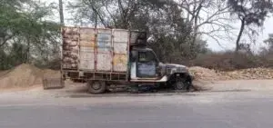 Sonbhadra breaking: संदिग्ध परिस्थितियों में मुर्गा लदा पिकअप में लगी आग