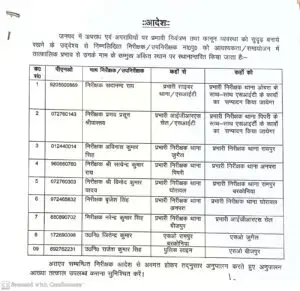 बीजपुर प्रभारी रहे नरेंद्र सिंह आईजी आर एस प्रभारी बनाए गए हैं। घोरावल प्रभारी रहे विनोद यादव को रामपुर बरकोनियां का प्रभारी बनाया गया है। पीआरओ रहे बृजेश दूवे को रेनूसागर चौकी प्रभारी बनाया गया है।पिपरी प्रभारी रहे सत्येन्द्र राय अनपरा प्रभारी बनाए गए। अनपरा प्रभारी बृजेश सिंह घोरावल प्रभारी बनाए गए। पुण्य प्रसून श्रीवास्तव पिपरी प्रभारी बनाए गए।