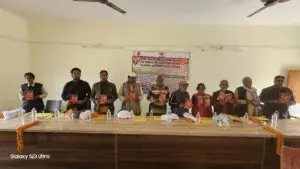 कवयित्री चंद्रलेखा सिंह की तृतीय पुस्तक साहित्य दर्शन का हुआ विमोचन - कई लोगों को अंगवस्त्र, पुस्तक, डायरी व लेखनी देकर किया गया सम्मानित - सोनभद्र बार एसोसिएशन सभागार में हुआ आयोजन सोनभद्र। शहीद स्थल प्रवंधन ट्रस्ट करारी, साहित्य दीप संस्थान व दयानंद साहित्य संस्था के तत्वावधान में शनिवार को सोनभद्र बार एसोसिएशन सभागार में कवयित्री चंद्रलेखा सिंह की तृतीय पुस्तक साहित्य दर्शन का विमोचन किया गया। साथ ही नव निर्वाचित बार के अध्यक्ष अशोक श्रीवास्तव एडवोकेट का सारस्वत अभिनन्दन किया गया। कवयित्री चंद्रलेखा सिंह को भी अंगवस्त्र माल्यार्पण कर साहित्य सर्जना के लिए सम्मानित किया गया। इसके अलावा कई मानिंद लोगों को अंगवस्त्र, पुस्तक, डायरी व लेखनी देकर सम्मानित किया गया।कार्यक्रम की अध्यक्षता महामहिम राष्ट्रपति से पुरस्कृत शिक्षक ओमप्रकाश त्रिपाठी व मुख्य अतिथि वरिष्ठ साहित्यकार कथा शिल्पी रामनाथ शिवेन्द्र, पूर्व बार अध्यक्ष चंद्र प्रकाश दिवेदी एड ने शारदे की प्रतिमा पर दीपदान माल्यार्पण कर विधिवत आयोजन का आगाज किया। गीतकार ईश्वर विरागी ने वाणी वंदना कर तथा गणतंत्र दिवस के उपलक्ष्य में आयोजित कवि सम्मेलन में अपनी कविता, थाम लेंगे वक्त को चलने न देंगे ऐ हिंद हम तुझको कभी झुकने न देंगे सुनाकर शुरुआत में ही आयोजन को भव्यता प्रदान किया। प्रयागराज फूलपुर से आये शारिक मखदूम ने अनेक गजल नज्म सुनाये खूब जमे। उनकी गजल,इंसानियत थी जिसमें वो इंसा कहाँ गए। हिन्दू कहाँ गये वो मुसलमां कहाँ गये। खूब सराही गयी।