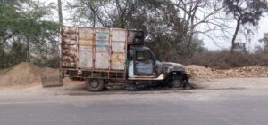 डाला सोनभद्र चढाई पर मुर्गा लदा पिकअप में संदिग्ध परिस्थितियों में लगी आग