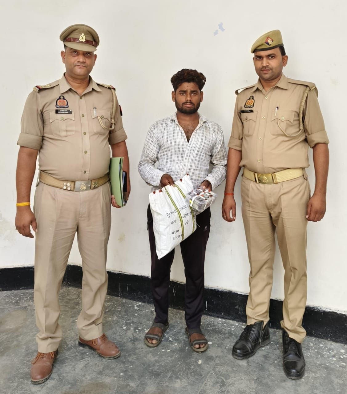 पुलिस ने बताया कि पकड़ा गया अभियुक्त रवि शर्मा, पुत्र शिवशंकर, निवासी कोटा, थाना चोपन, जनपद सोनभद्र (उम्र करीब 20 वर्ष) है। उसे रविवार शाम करीब 7:55 बजे एक प्लास्टिक के झोले में गांजा लेकर घूमते हुए गिरफ्तार किया गया।