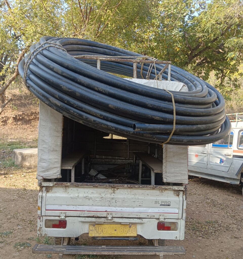 वाहन संख्या UP64AT 8650 मे लदे जी0वी0पी0आर0 कम्पनी एचपीईपी 63mm पीएन 8 की लगभग 300 मी पाईप बरामद ।