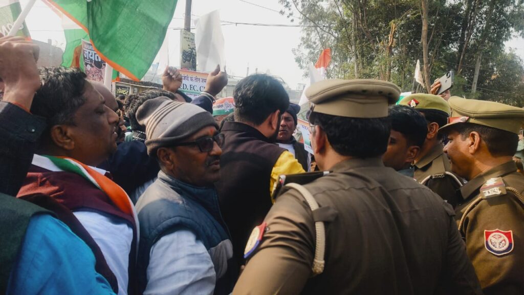 वहीं, सुरक्षा व्यवस्था को देखते हुए भाजपा कार्यालय पर पहले से ही पुलिस और पीएसी बल की तैनाती की गई थी। पूरे घटनाक्रम के दौरान पुलिस प्रशासन सतर्क नजर आया और स्थिति को नियंत्रण में रखने का प्रयास करता रहा।