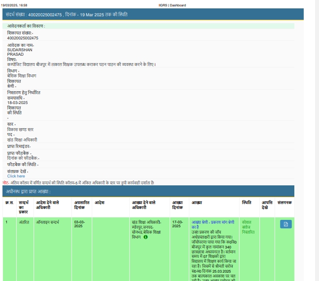 बीजपुर, सोनभद्र : प्रदेश सरकार द्वारा आमजन की शिकायतों के त्वरित समाधान के लिए संचालित सीएम पोर्टल अब शिक्षा विभाग सोनभद्र के लिए केवल एक औपचारिकता बनकर रह गया है। फरियादियों की मानें तो इस पोर्टल पर दर्ज कई मामलों में बिना उचित जांच के ही स्पेशल क्लोज का सहारा लेकर शिकायतों को बंद कर दिया जा रहा है।