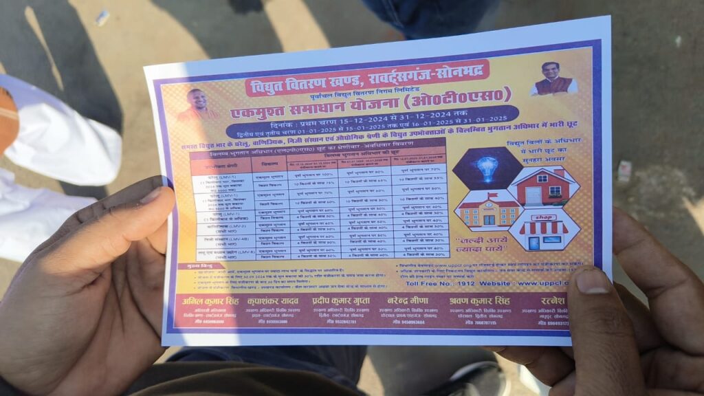 चुर्क,सोनभद्र: आज बुधवार को बिजली विभाग के अवर अभियंता अरविंद कुमार ने अपने समस्त बिजली विभाग टीम के साथ चुर्क नगर के समस्त वालों में घूम-घूम कर ओटीस (एक मुफ्त समाधान योजना) का लाभ उठाने के लिए उपभोक्ताओं को जागरूक किया गया। रैली में विद्युत उपभोक्ताओं को बैनर, पोस्टर व अनाउंसमेंट के माध्यम से ओटीएस योजना की जानकारी दी गई।