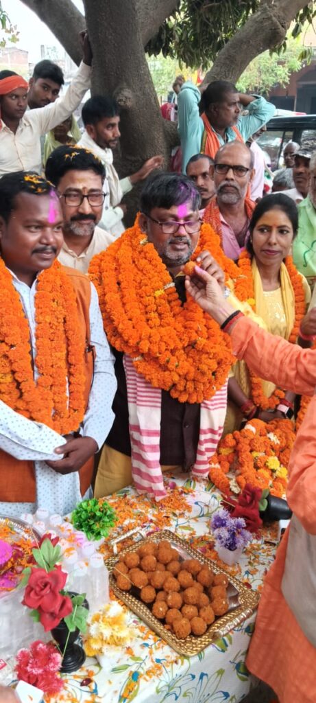 सोनभद्र : भारतीय जनता पार्टी सोनभद्र के नवनिर्वाचित जिलाध्यक्ष नंदलाल गुप्ता का कार्यकर्ताओं द्वारा भव्य स्वागत किया गया। गुरुवार दोपहर नंदलाल गुप्ता ने चतरा और नगवां मंडल का दौरा कर कार्यकर्ताओं से मुलाकात की, जहां समर्थकों ने उन्हें फूल-मालाओं से लादकर ढोल-नगाड़ों के साथ जोरदार अभिनंदन किया। इस दौरान पार्टी कार्यकर्ताओं ने मिठाइयाँ बांटकर और खुशी मनाकर अपने अध्यक्ष का जोशपूर्ण स्वागत किया।